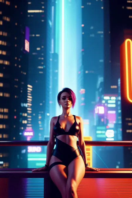 ((portrait shot)) A photo of WAS-JA, (((Leaning over a railing), overlooking futuristic cyberpunk city skyline, neon signs, (heavy rain, rain drops))), good hand,4k, high-res, masterpiece, best quality, head:1.3,((Hasselblad photography)), finely detailed skin, sharp focus, (cinematic lighting), collarbone, morning, soft lighting, dynamic angle, [:(detailed face:1.2):0.2], thigh gap, slender, (medium breasts), cleavage