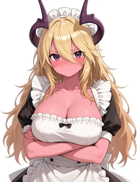 beth, 1girl, long hair, blonde hair, large breasts, hair between eyes, medium breasts, purple eyes, pink eyes, abs, red skin, horns, heterochromia, black bra, black mini shorts, black armored boots, black cloak, ragged cloak, ragged clothes, spikes, belt,