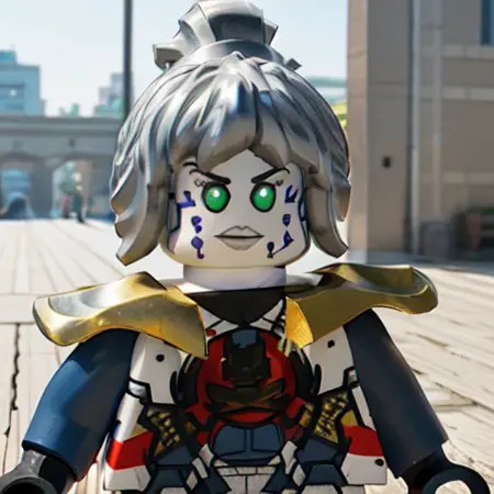 P.I.X.A.L from Ninjago. Use "Purple Clothing" or "Samaurai X" as tags for her different outfits.