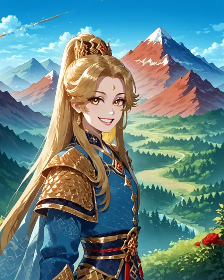 A lora for generating female generals in Chinese battle armor. I haven't experimented to see what happens when you generate men, but the training images are all women, so it's specialized for that.