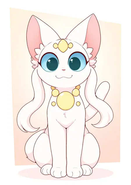remikyuki, cat, white fur, yellow details, blue eyes, cat tail