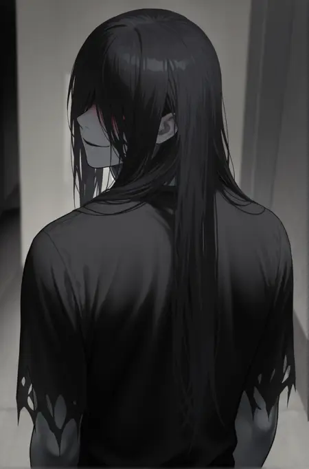 Base Prompt: crawling, mr_crawling, black hair, long hair, hair over eyes, colored skin, grey skin,