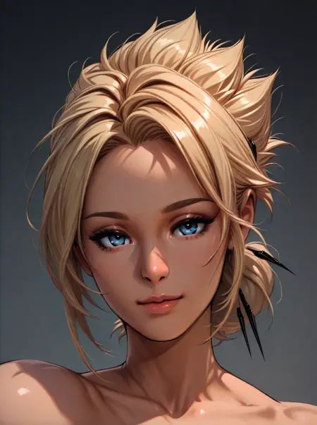 人間形態と半変身形態のゲーム風ヘアスタイルを強化したい場合は、「spikey hair, bangs」とプロンプトしてください。