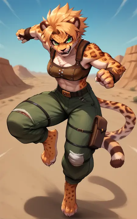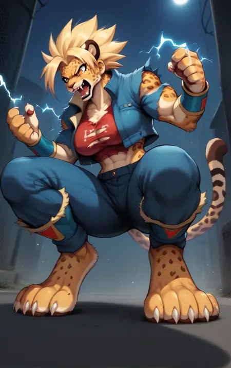 对于本LoRA,我训练了三种形态:Shina的普通人类形态、完全的猎豹兽形,以及一种“半转化”形态,可用于制作变形过程中的中间帧(或如果你只是想要一个更女性化的兽化版本)。在游戏中,她直接从人类形态瞬间变为完全兽化形态,中间没有任何过渡阶段——这一点是我专门为本LoRA所创新的。