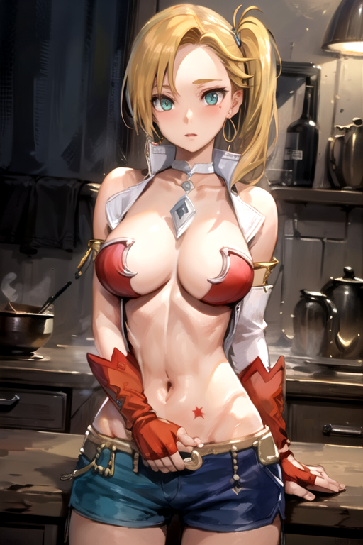 | 학습된 단어 | 1girl, breasts, side ponytail, leotard, large breasts, jewelry, solo, navel, blonde hair, detached collar, green leotard, sitting, smile, open mouth, looking at viewer, earrings, blush, cleavage, flower, bare shoulders, long hair, star tattoo, bangs, green eyes, strapless leotard, strapless, parted bangs,복사됨! 1girl, solo, breasts, blonde hair, shorts, long hair, tattoo, side ponytail, fingerless gloves, star tattoo, hoop earrings, earrings, jewelry, navel, gloves, looking at viewer,복사됨! |