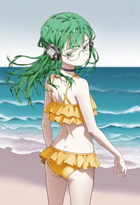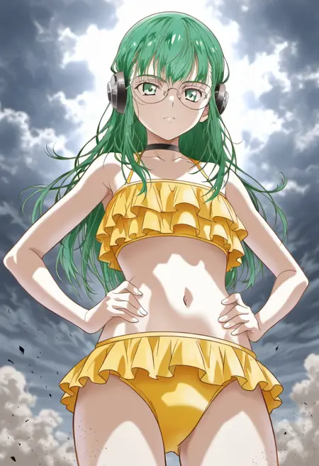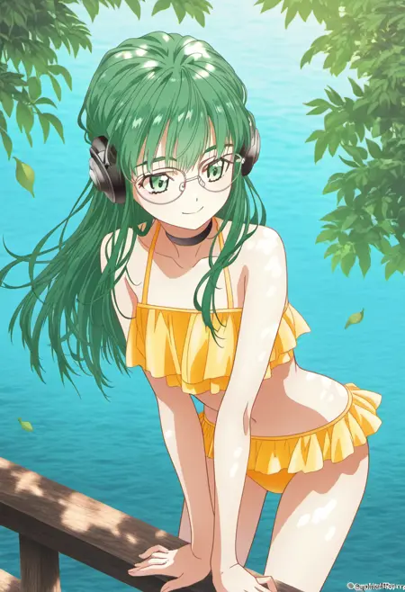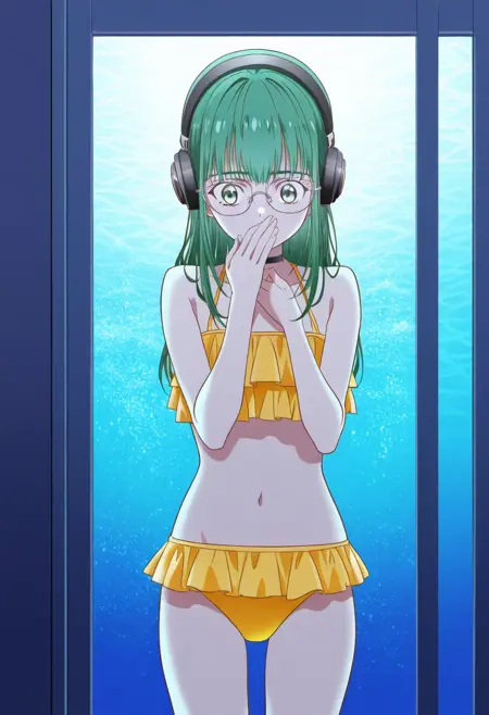 복장 프롬프트 B: 수영복, 프릴이 달린 비키니, 노란 비키니