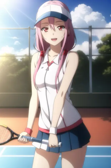 <lora:GuiltyCrownInori-IL-v1-08:0.9>, ChopioInori, 粉色长发, 侧发, 发管, 发夹, 红色眼睛, 粉色嘴唇, 直视观众,