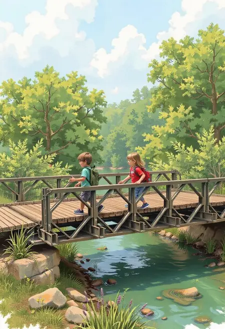 这是一座在战争电影中常见的临时桥梁。请用它来创建AI场景模型。