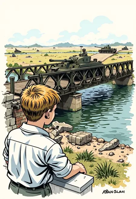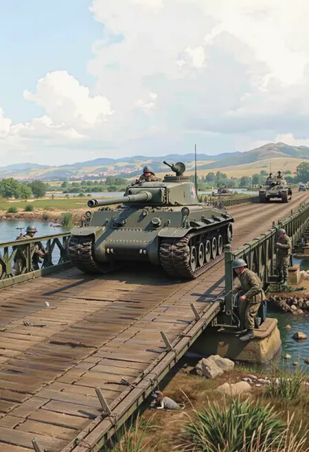 这是一座在战争电影中常见的临时桥梁。请用于创建AI场景模型。