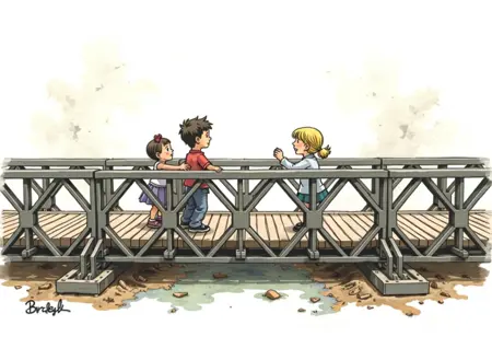 贝利桥(Bailey Bridge)是一种只需在现场组装单元即可建造、无需起重机的预制桁架桥,由英国战争部文官唐纳德·贝利于1930年代发明。这种仅需数十人即可在数小时内完成搭建的施工方法堪称工程学上的奇迹,其军用临时桥梁在第二次世界大战中被英军、美军和加拿大军广泛使用,为同盟国的胜利作出了重大贡献。至今,它仍被广泛用于紧急交通通道的临时搭建;在一些发展中国家,贝利桥甚至被作为永久性基础设施使用。