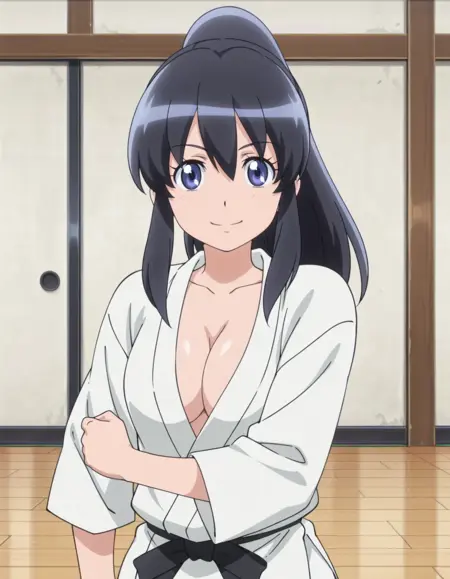 score_9, score_8_up, score_7_up, 애니메이션 스크린캡, 솔로, 1소녀, hikawamaria, 플랫테일, 도우기, 가라테, lora:hikawamaria:0.8