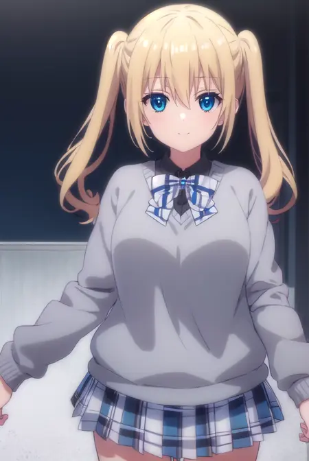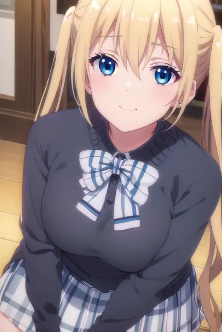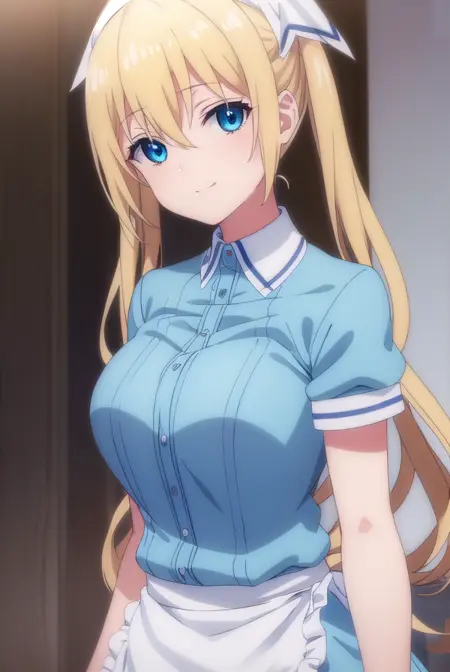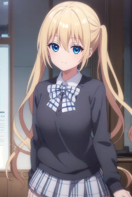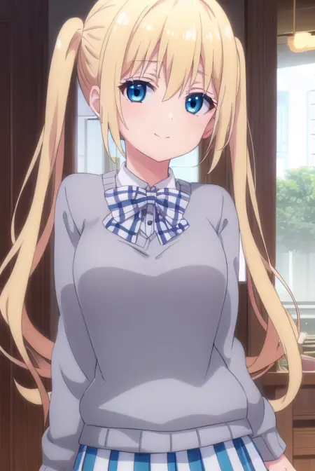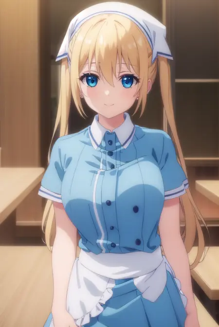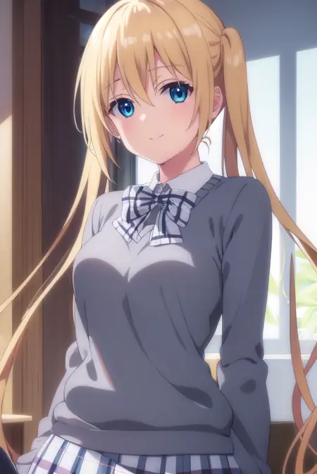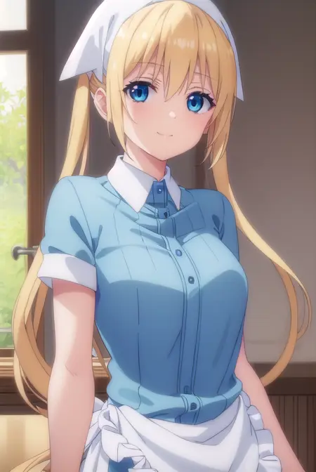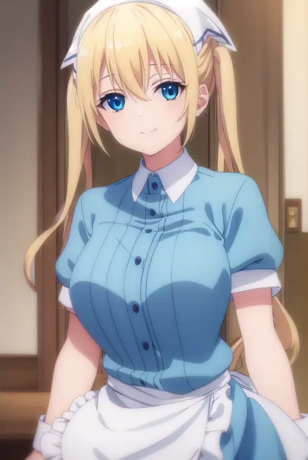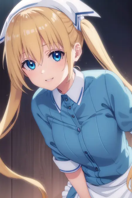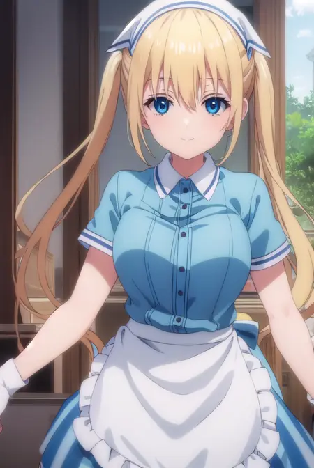 kaho hinata, 금발, 파란 눈, 눈 사이의 머리카락, 긴 머리, 측면 머리카락, 더블테일,