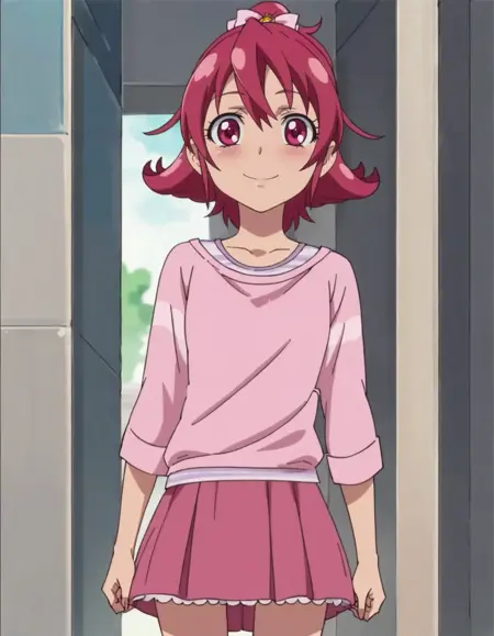 score_9, score_8_up, score_7_up, anime screencap, solo, 1girl, aidamana, shirt,pink shirt, skirt, pink bow,lora:aidamana:0.8