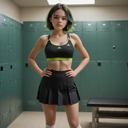 对于V1版本,同时使用“short hair”和“two tone hair”通常效果良好,而添加“green streaks”或你想要的任何颜色会显著提升效果。