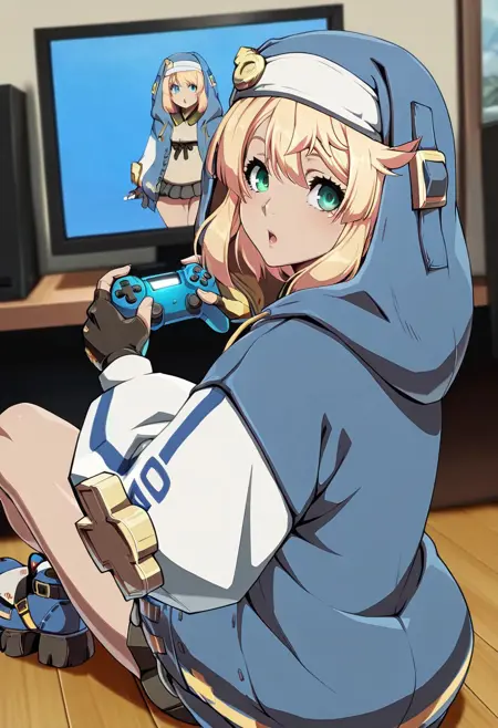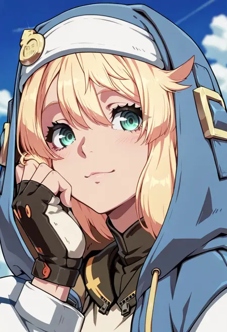 提示:Bridget,1个女孩,绿色眼睛,金色头发,连帽衫,无指手套,杰作,最佳画质