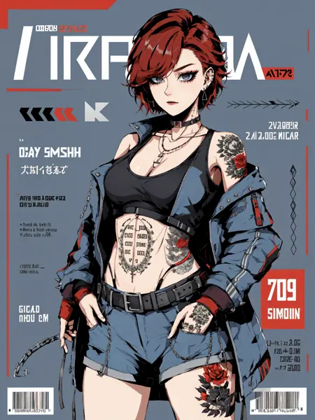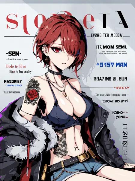 使用类似(杂志封面, english text:1.3)的提示,可获得封面漫画书的样式。