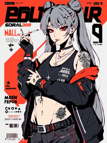 Use something like (magazine cover, english text:1.3) to get the front page manga book cover look.
