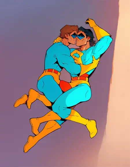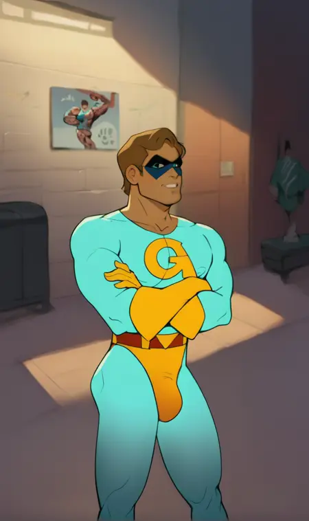 보조 단어: cartnon, 1980년대 만화, 슈퍼히어로 복장 등