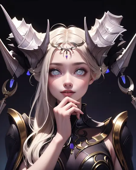 为了呈现她的默认装扮/形象,除了主触发词外,还需加入以下触发词:黑色连衣裙、角饰、斗篷。