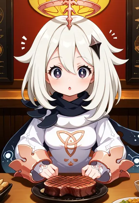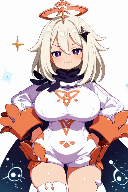 | 训练词汇 | zzPaimon, purple eyes, hair between eyes, hair ornament, halo, long hair, short hair, white hair,已复制! zzPaimon, purple eyes, hair between eyes, hair ornament, halo, long hair, short hair, white hair, long sleeves, dress, scarf, white dress, blue eyes, cape, thighhighs, single thighhigh, white thighhighs,已复制! |