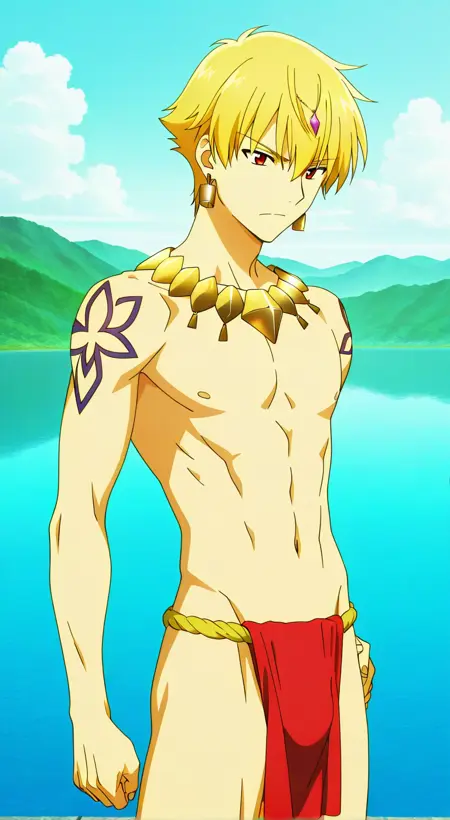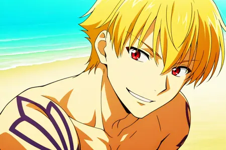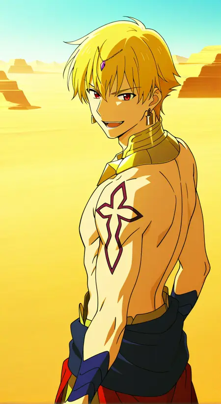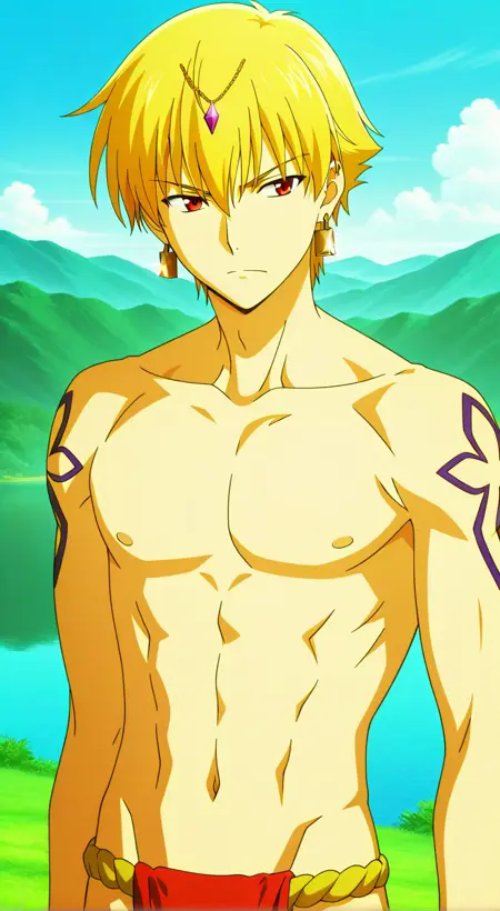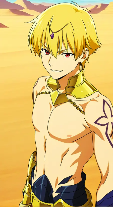 트리거 단어: 길가메시, 금발, 단발, 빨간 눈, 앞머리, 문신