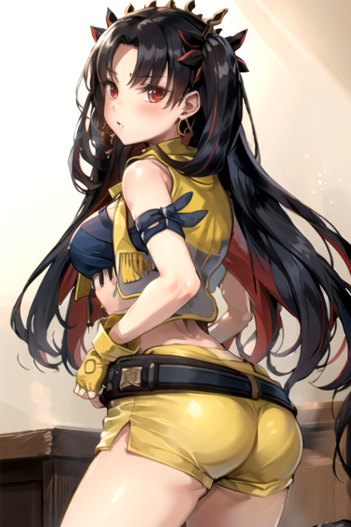 | Trained Words | spaceishtar Copied! the anime is showing an image of a female character's outfit with her hair up, 1girl, blue hair, long hair, facial mark, cloak, blue eyes, solo, fur-trimmed cloak, forehead mark, horns, ishtar (fate), crescent facial mark, symbol-shaped pupils, two side up, multicolored hair, Copied! an anime drawing of a woman in a red costume and long, purple hair, 1girl, red cloak, long hair, fur-trimmed cloak, pink hair, cloak, horns, solo, two-tone hair, blue hair, crescent, crescent facial mark, ishtar (fate), multicolored hair, facial mark, forehead mark, two side up, symbol-shaped pupils, star-shaped pupils Copied! a anime girl with blue hair 1girl, solo, horns, bodysuit, multicolored hair, long hair, ishtar (fate), two-tone hair, black bodysuit, blue hair, red hair, breasts, grey eyes, cleavage cutout, looking at viewer Copied! a woman with long hair wearing tight short ha outfit and leggings, 1girl, ishtar (fate), long hair, black hair, yellow shorts, red eyes, solo, shorts, red hair, gloves, yellow vest, earrings, jewelry, multicolored hair, two-tone hair, two side up, ass, breasts, looking at viewer, fingerless gloves, hoop earrings, short shorts, blush, belt, vest, bangs, room background, yellow gloves, cropped vest Copied! |