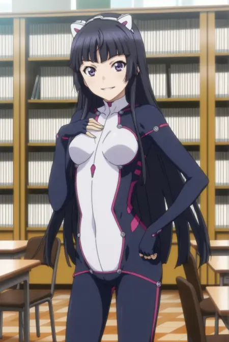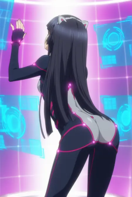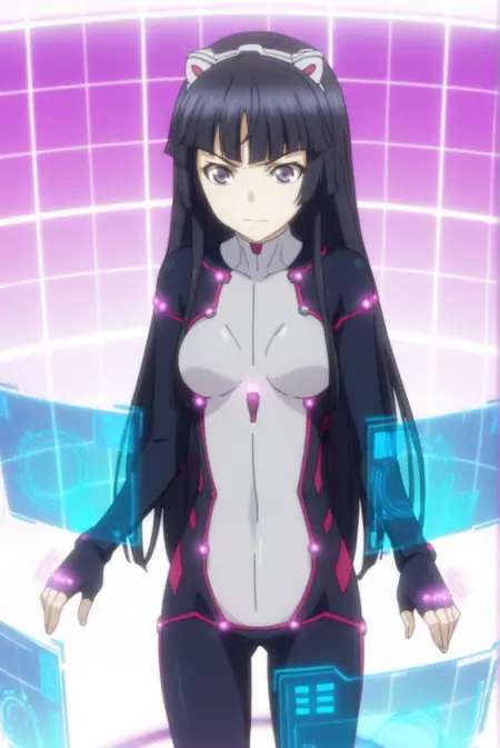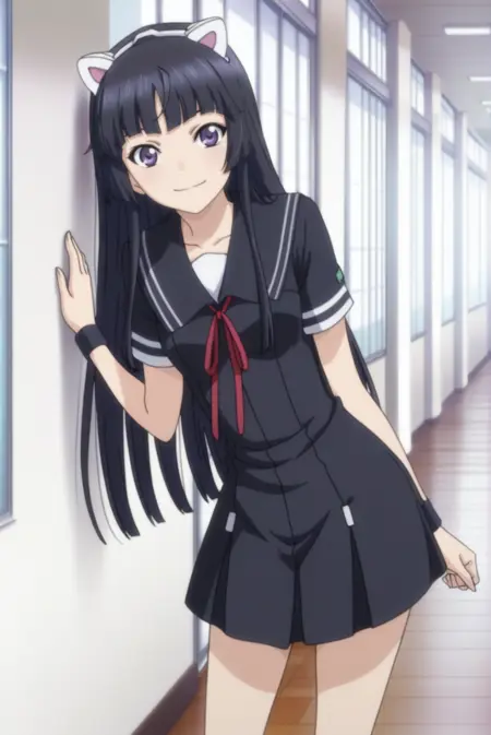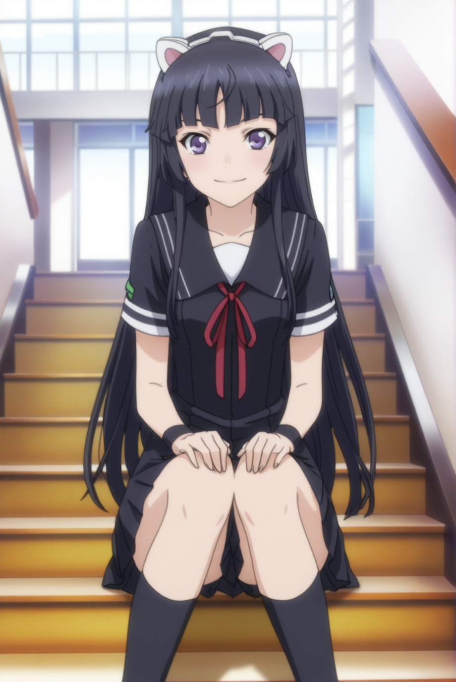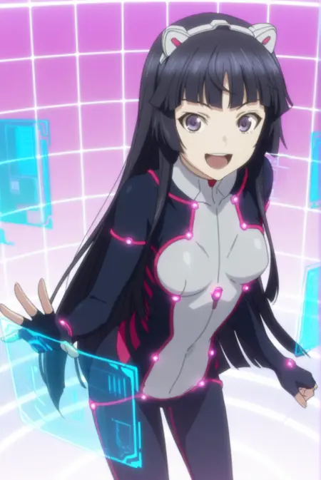 <lora:GuiltyCrownTsugumi-IL-v1-08:0.9>, ChopioTsugumi, 极长发,黑发,姬发式,紫色眼睛,注视观众,