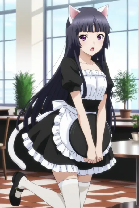 outfit_3, 猫娘,猫耳,女仆,荷叶边裙子,蓬松短袖,女仆围裙,绝对领域,白色长袜,猫尾,白色尾巴,玛丽珍鞋,黑色鞋履,
