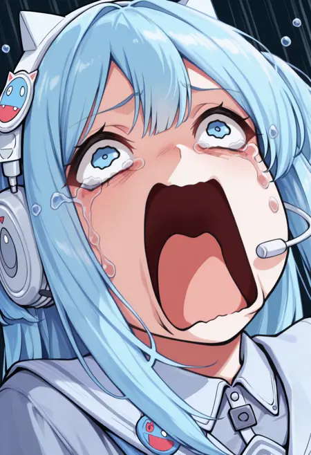 Trigger + Additional Tags: aquascreaming, screaming, open mouth, crying with eyes open