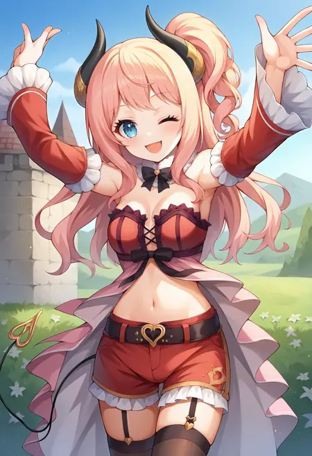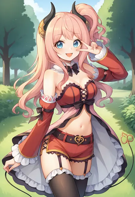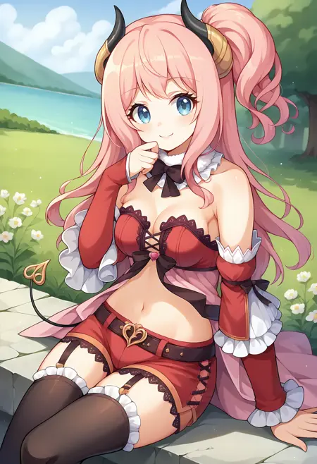 • pcrsuzuna, 粉色头发, 长发, 角, 魔鬼尾巴, 蓝眼睛, 中等胸部,