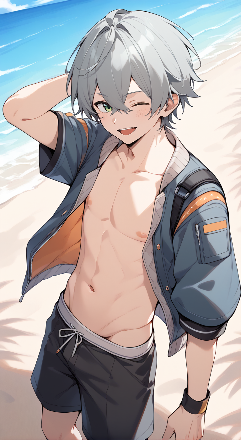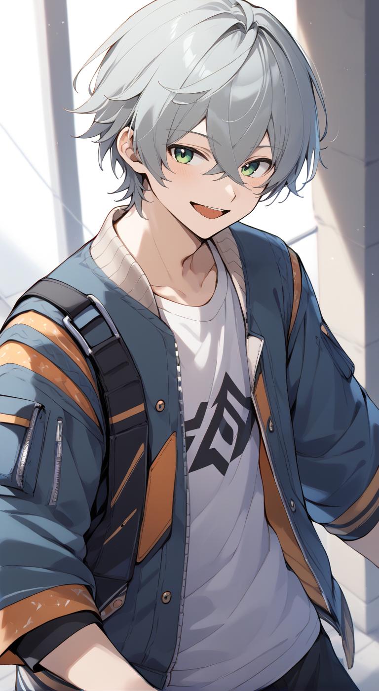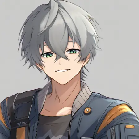 Trigger words: wise(zzz),grey hair,short hair,hair between eyes,green eyes