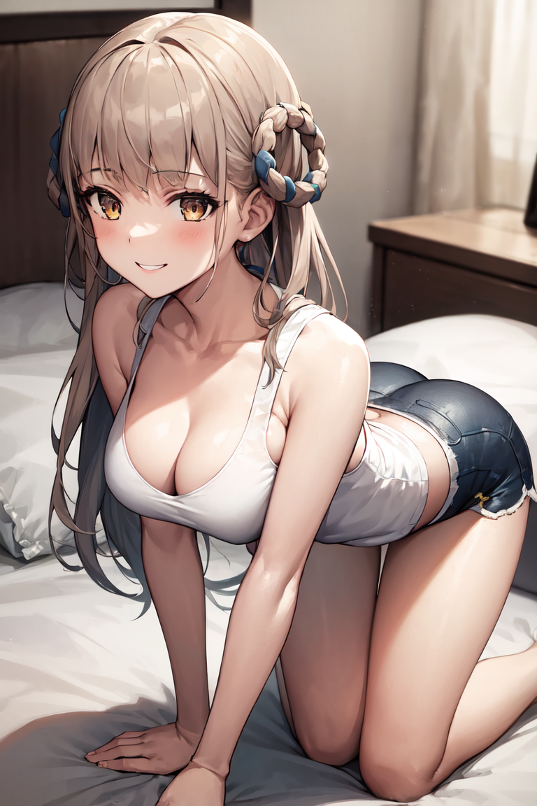彼女の髪型には "long hair, hair rings" を使用してください。