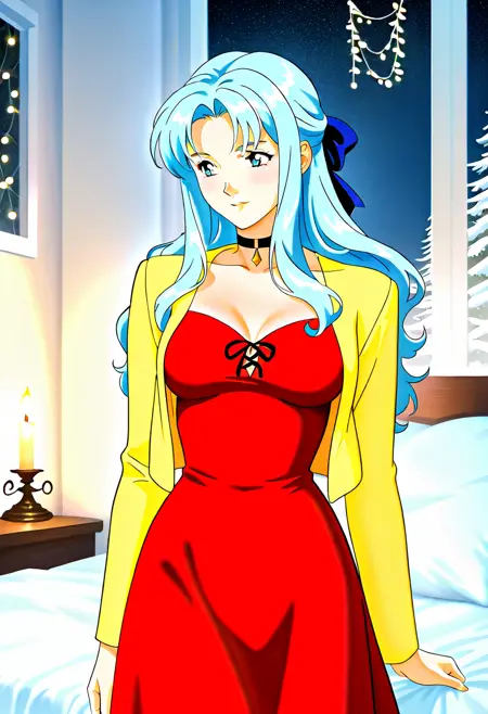Sylia_Stingray, blue hair, blue eyes, long hair, half updo,