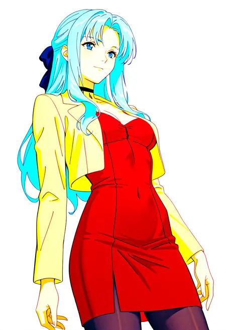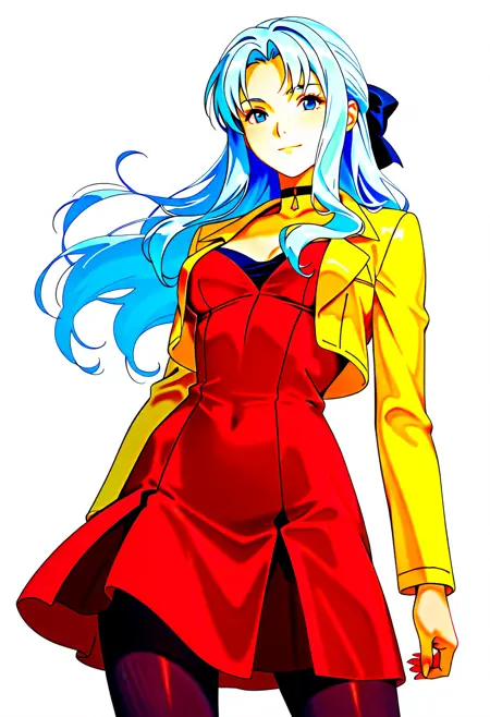 choker, jacket, skirt, high heels, pencil skirt, pantyhose, hair bow