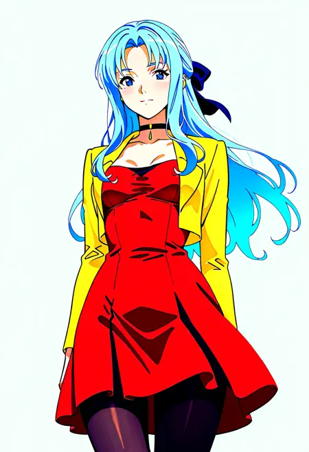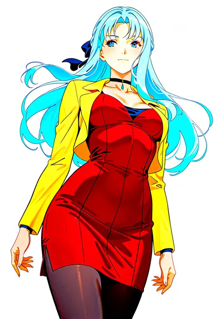 choker, jacket, skirt, high heels, pencil skirt, pantyhose, hair bow