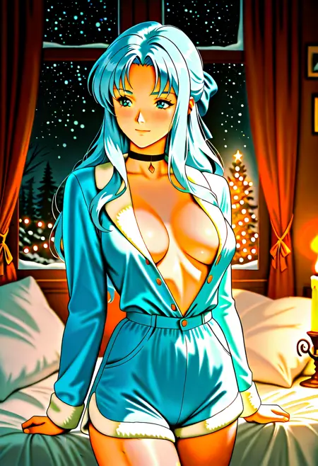Sylia_Stingray, blue hair, blue eyes, long hair, half updo,
