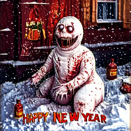 crasno,"happy new year",snowman,snow,teeth,horror(theme),solo,window,open mouth,bottle,no humans,monster,red square,outdoors,building,blood,fireworks,zombie,night,looking at viewer,red eyes,outstretched arms,hat,smile,snowing,happy new year,inside,skeleton,arms up,waving,holding,chromatic aberration,arm up,stone building,street,neon text,horror,(theme),lantern,brick building,christmas lights,night sky,lamppost,sharp teeth,indoors,christmas,city,door,dutch angle,glowing,glowing eyes,balloon,crowd,sky,tree,male focus,skull,doorway,christmas decorations,scarf,reaching,top hat,holding balloon,celebration,alley,wooden floor,holding up arms,red suit,wooden walls,fence,wooden building,scenery,store front,white headwear,winter,grin,graffiti,sitting,arms at sides,fog,red light,2others,food,table,painting(object),saturated,carrot,letterboxed,ghost,painting,hallway,english text,hood,abandoned building,reaching out,gloves,scary eyes,porch,box,crown,white eyes,godzilla,happy,anticipation,hands up,angry,broken window,reflection,black eyes,glass,christmas tree,bare tree,pajamas,tuxedo,bowtie,road,apartment,filth,tongue,wooden house,santa hat,white beard