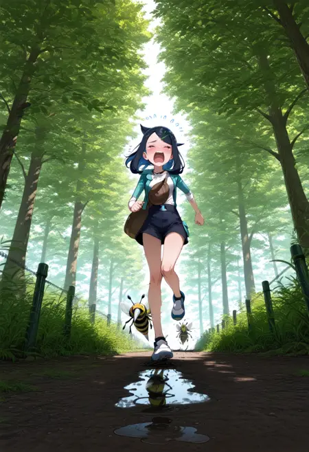 使用“dirt road”有助于生成泥泞小径,但若配合面部专用Adetailer,可能会意外导致面部沾上泥点,此时建议在用于面部的提示词中移除“dirt”。