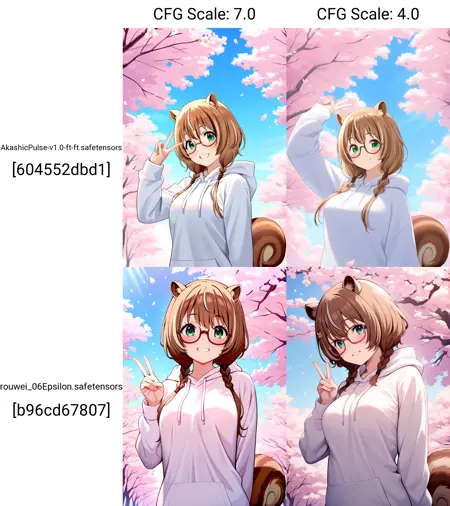AkashicPulse 是基于 RouWei 的微调模型,而 RouWei 又基于 Illustrious 模型。