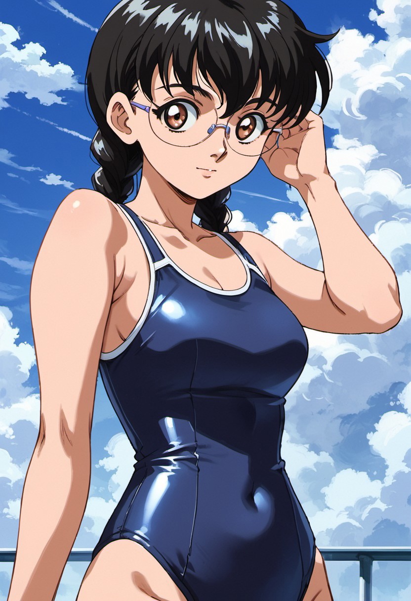: izumi yuka, めがね, 黒髪, ツインテール, 茶色の目