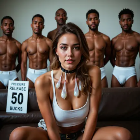 If you have trouble getting results, Instead of “she is wearing a condom belt” Use things like“ she is wearing a [any color] belt with cum filled condoms attached to it. Also get inspired by the example image prompts.