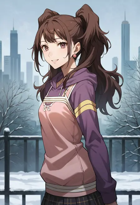 Her winter casual outfit is a bit inconsistent, but partially since it's just kind of a weird outfit? I think she's wearing a tank top over a purple hoodie dress thing? Anyway give it a go and let me know your thoughts.