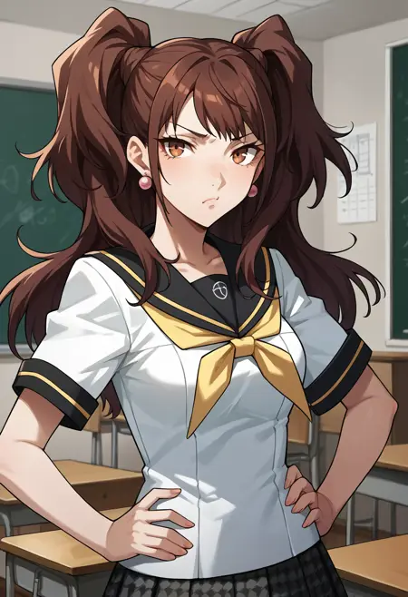 p4rise, kujikawa, rise, twintails, long hair, brown hair, pink earrings