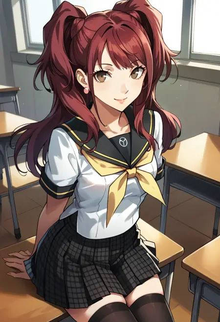 p4rise-winuni, yasogami school uniform, serafuku, long sleeves, black shirt, white turtleneck, school uniform, pleated skirt, houndstooth, thighhighs, zettai ryouiki,