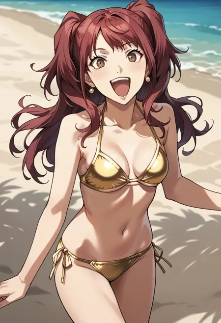 p4rise, kujikawa, rise, twintails, long hair, brown hair, pink earrings
