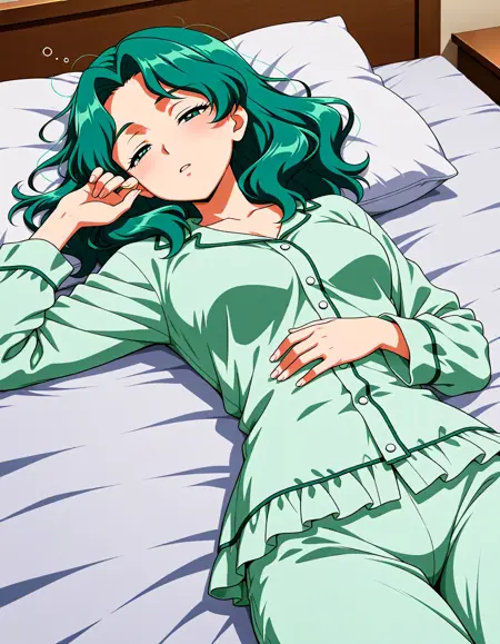 트리거 단어: kaiou michiru, 녹색 눈, 녹색 머리, 중간 길이 머리, 이마 보석, 왕관, 브로치, 초크, 장갑, 하트, 하트 브로치, 보석, 레오타드, 마법소녀, 세일러 센시 유니폼, 치마, 스타 초크, 흰 장갑, 리본, 녹색 리본, 녹색 세일러 칼라, 녹색 치마,
