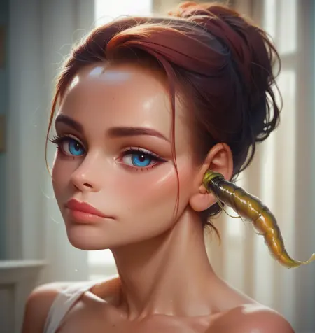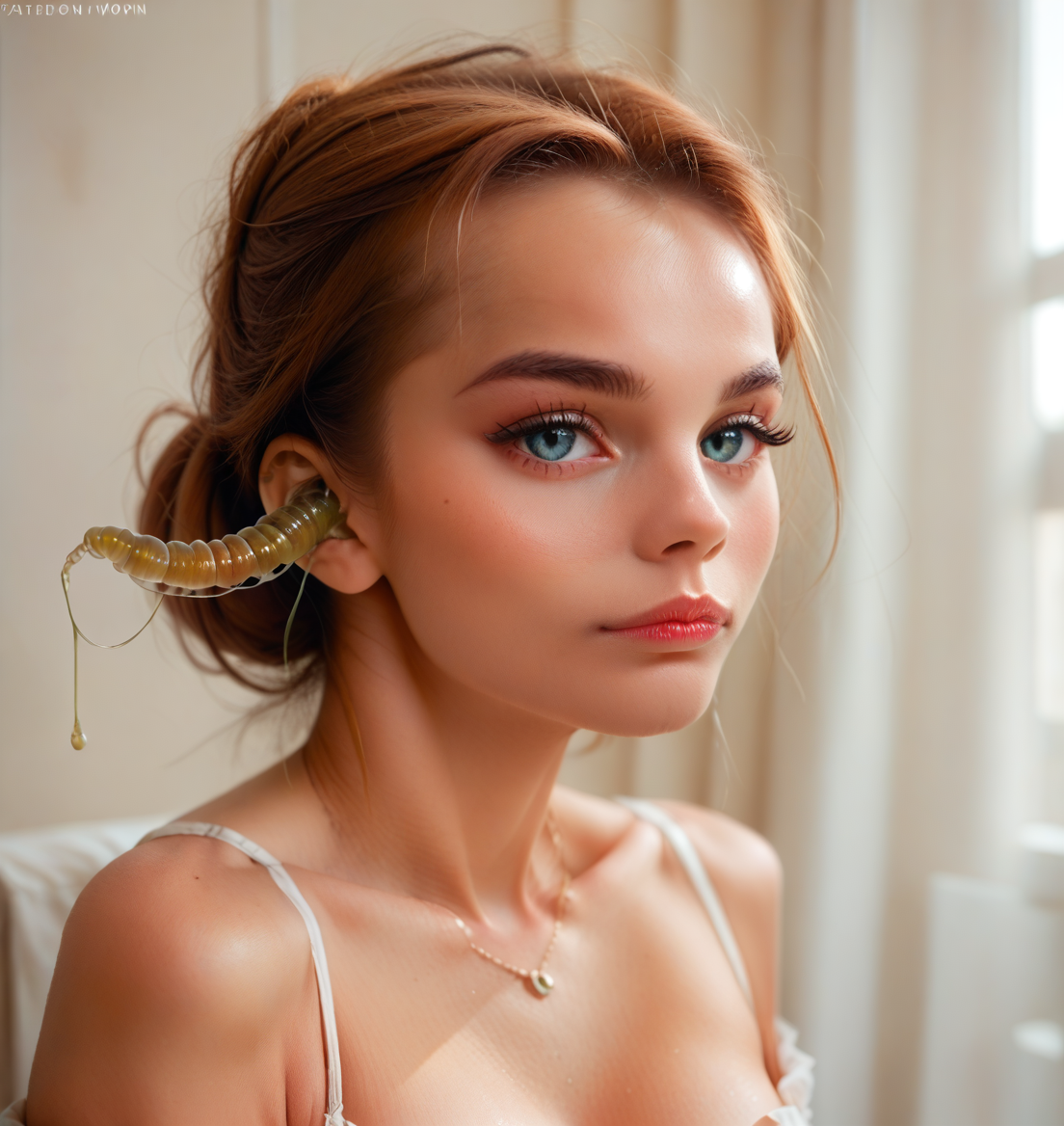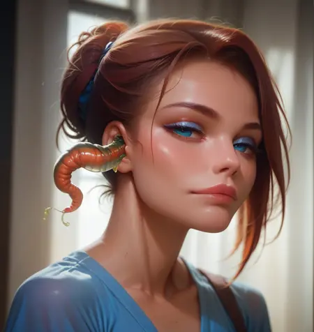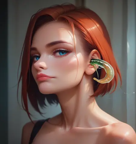 필수 프롬프트 - 외계 벌레 기생충이 귀로 기어들어옴.