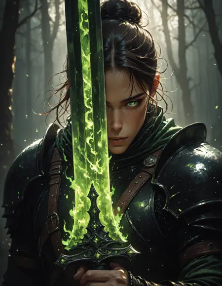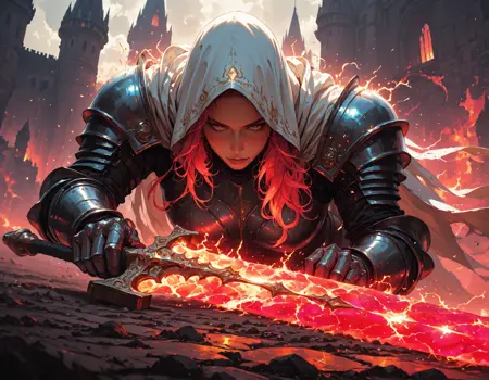 请使用触发词 hkstyle(为获得最佳效果,可添加“手持剑”、“身穿盔甲”等描述)