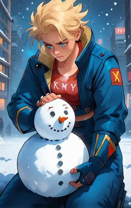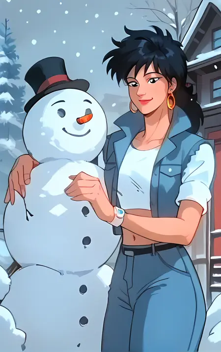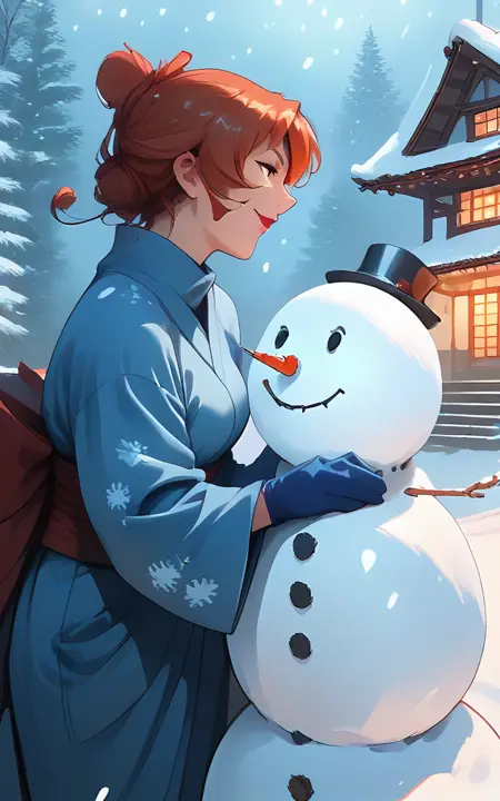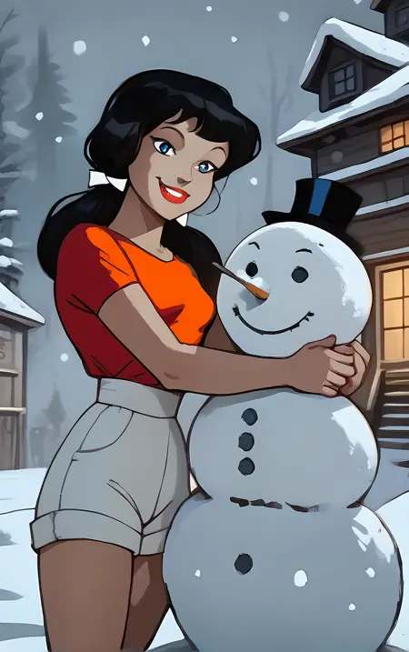 雪だるまを築く1人または複数のキャラクターを描きます。これは私の初めてのコンセプトLoRAの試みであり、やや不安定です。テストでは、強度0.8~1.0で比較的一貫した結果を得られましたが、その強度ではスタイルに影響が出始め、本当に良い構図を得るには数回試行する必要があるでしょう。