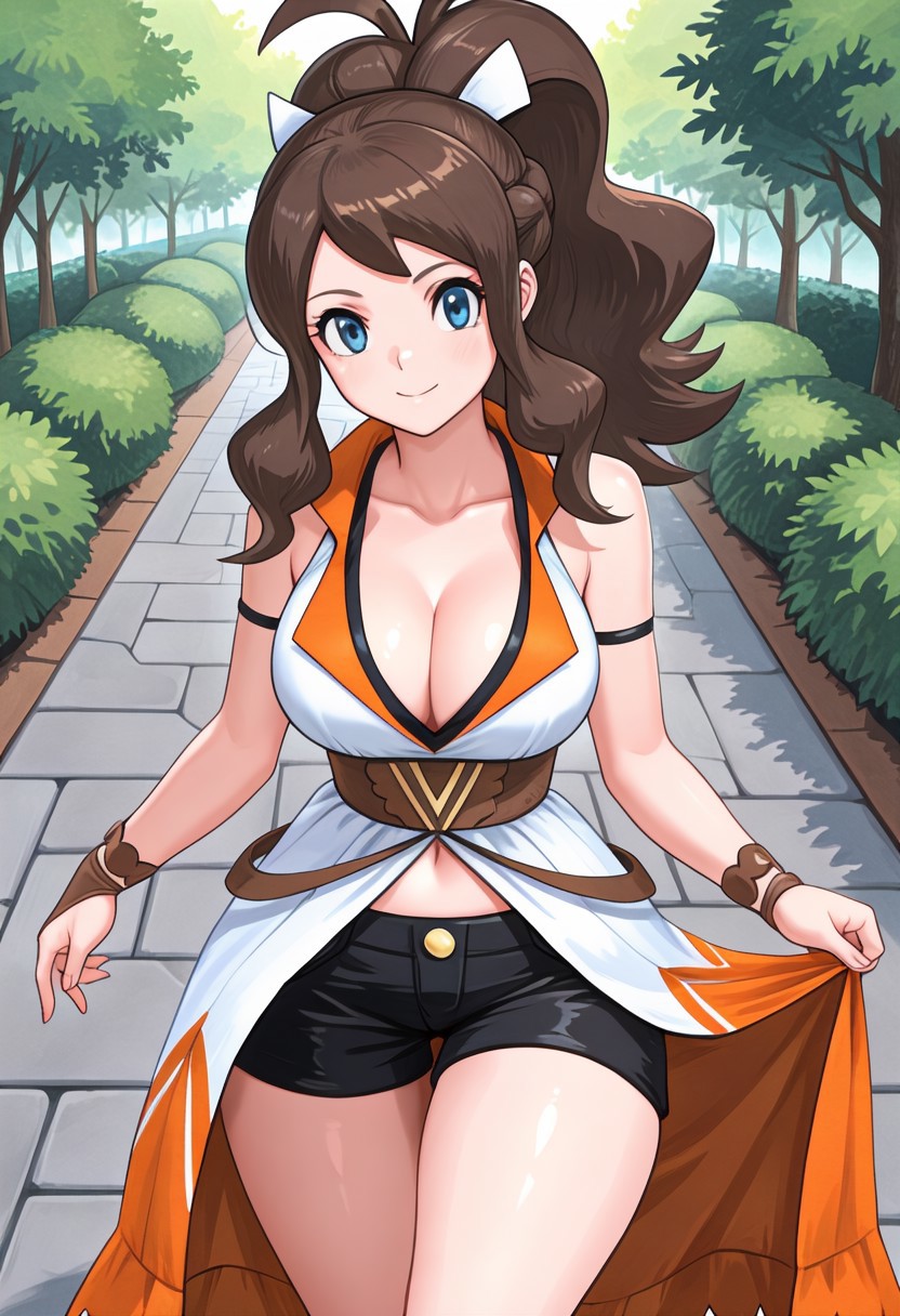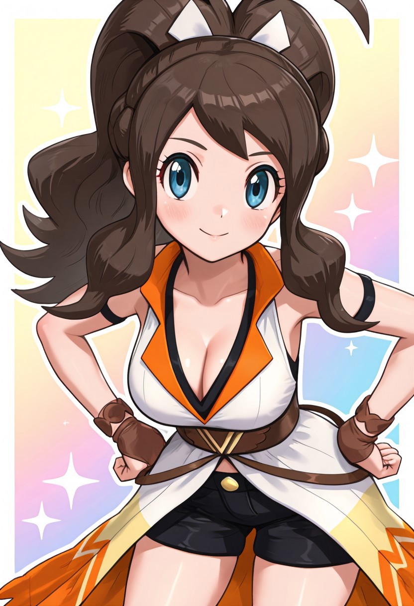 | トレーニングワード | syghilda, blue eyes, brown hair, sidelocks, high ponytail, antenna hair, sleeveless dress, showgirl skirt, multicolored dress, white dress, orange dress, v-neck, bridal gauntlets, bracelet, black shorts, short shorts, sandals, brown footwear, block heelsコピーしました! |